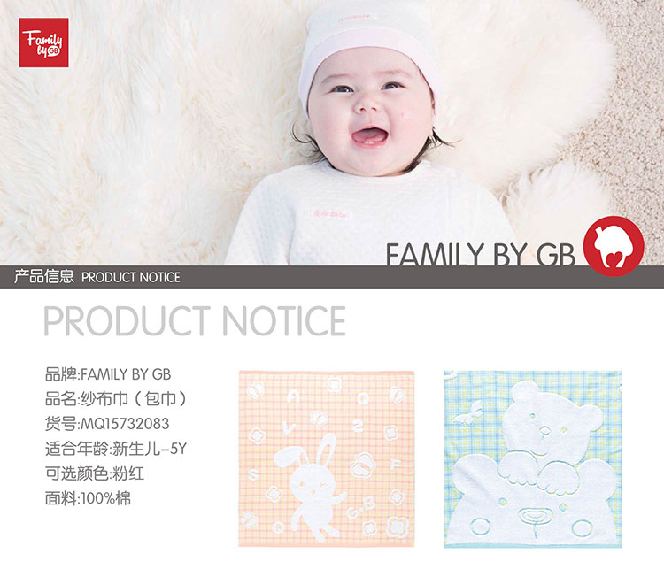 好孩子Family by GB嬰兒抱被兒童抱毯紗布包被新生兒包巾寶寶浴巾 - 525865019330