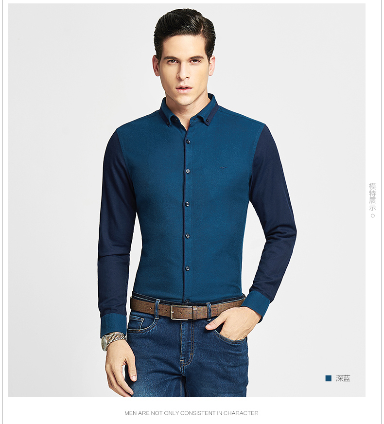 天貓購物商城 七匹狼長袖襯衫 秋季新款 男士天絲商務休閑扣領拼接襯衫2579 - 521087674819 購物網 買東西推薦