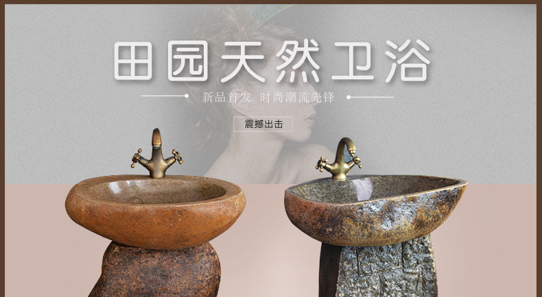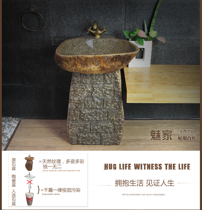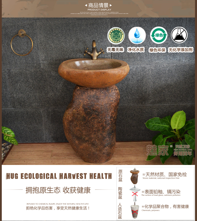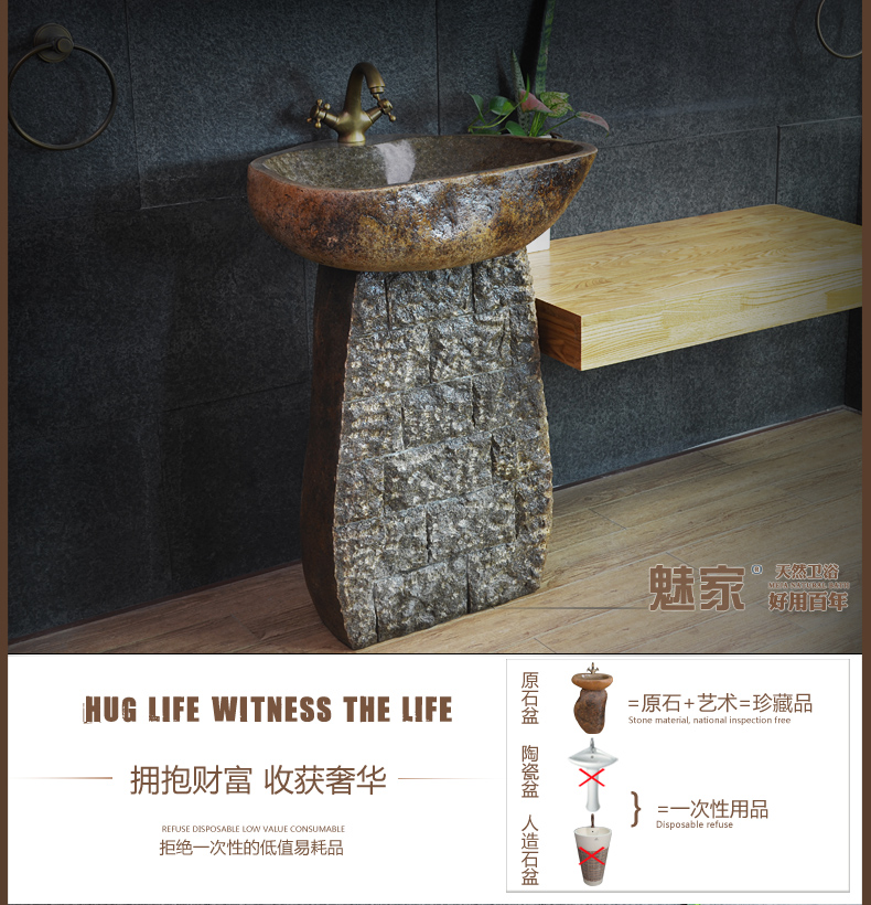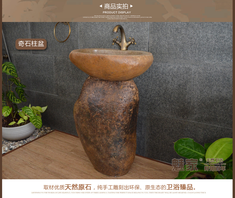 魅家藝術柱盆洗臉盆立柱盆 歐式立柱式洗臉盆 陽臺洗手盆石頭盆 - 43591449554